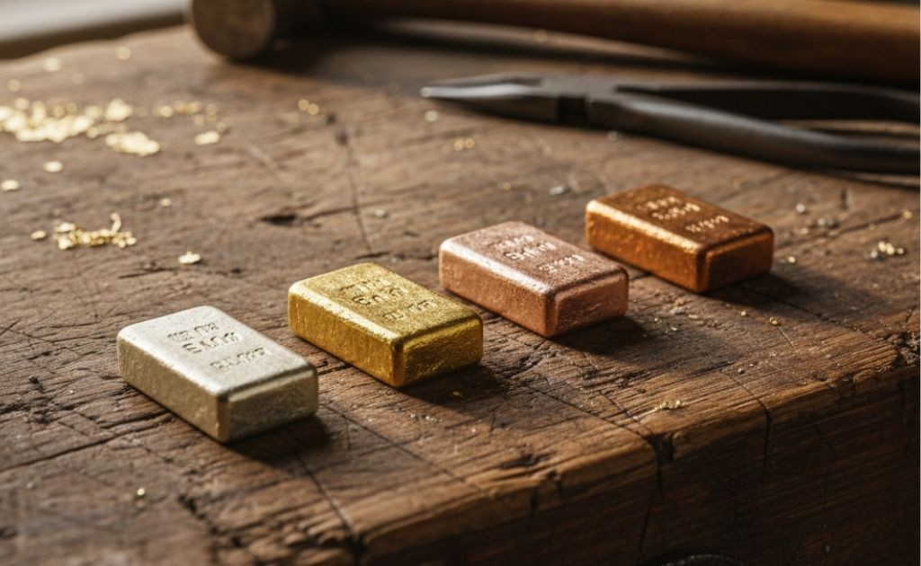 IMPORTANTE: Ahora es cuando entra la magia de los joyeros, la verdadera alquimia. Es donde podemos jugar con las proporciones, sacrificando parte de la pureza o quilataje del Oro para lograr tonos más profundos y marcados, aunque claro, ya no sería 18k. Como ya aprendiste, una mayor cantidad de metales blancos (como la plata o el paladio) "aclaran" al Oro llevandolo a un blanco más puro similar a la Plata, mientras que una mayor presencia de Cobre lo intensifica (lo "oscurece" hacia tonos rojizos).