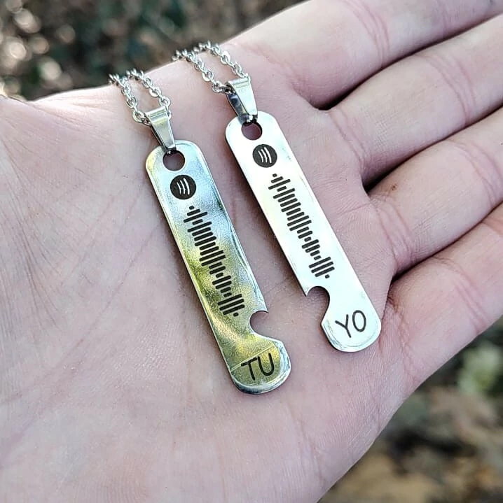 El regalo ideal para demostrar el amor verdadero con tu pareja. Collares Tu y Yo Spotify combinables para compartir, para que siempre que los miren se recuerden. Dedicale una canción a esa persona que tanto querés, la canción con la que se conocieron, o esa música preferida que tanto recuerdos y buenos momentos les trae a la mente.
