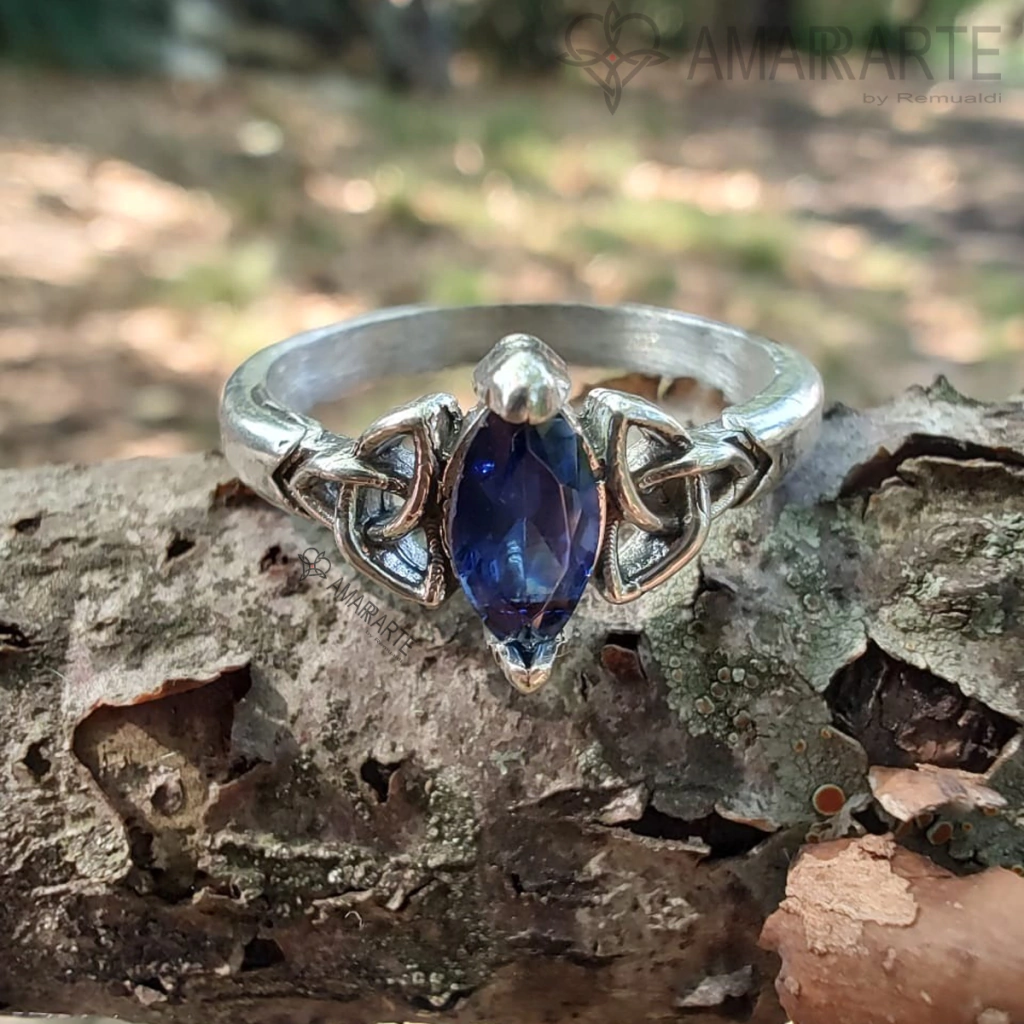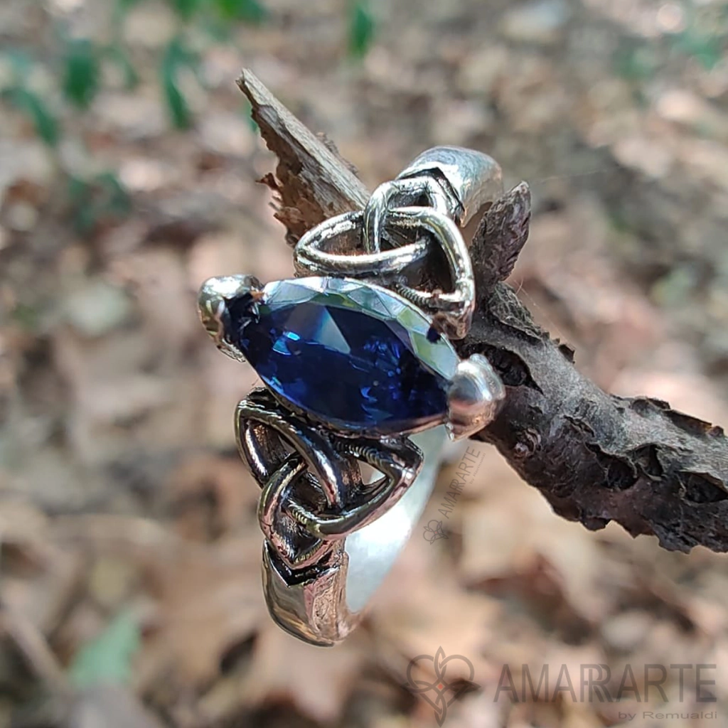 Anillo con diseños de Triquetas y cristal Navet Zirconía Cúbica. Pieza elaborada en Plata 925 maciza.